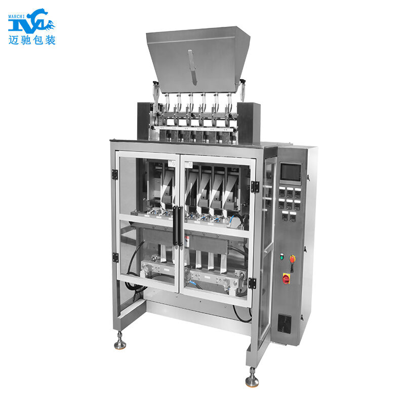1.本自動包裝機可自動完成產(chǎn)品多列的自動計量、自動充填、自動制袋(可印字)、封口、定包切斷等功能。